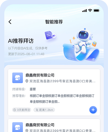 智能推荐拜访客户,多维度数据筛选高价值客户,一键加计划,杜绝遗漏