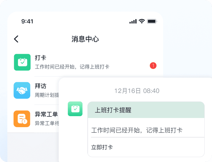 当日拜访计划、打卡、日报填写、出围栏等智能提醒,避免工作遗漏