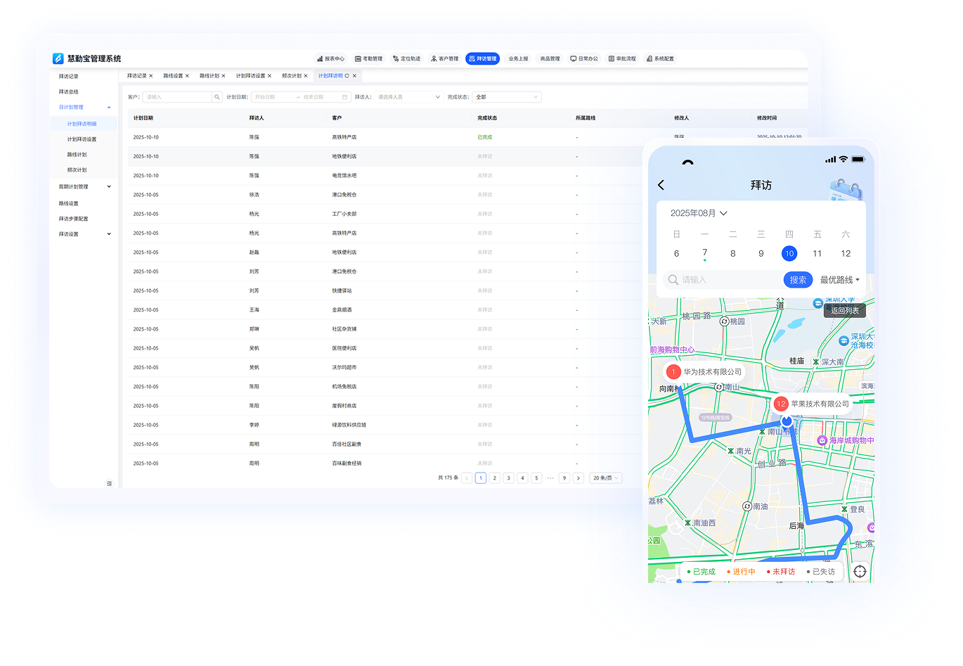 智能规划拜访计划+路线,规范拜访流程,质+量翻倍