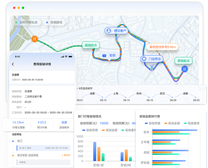 依托真实工作轨迹智能报销,自动核验行程公里数