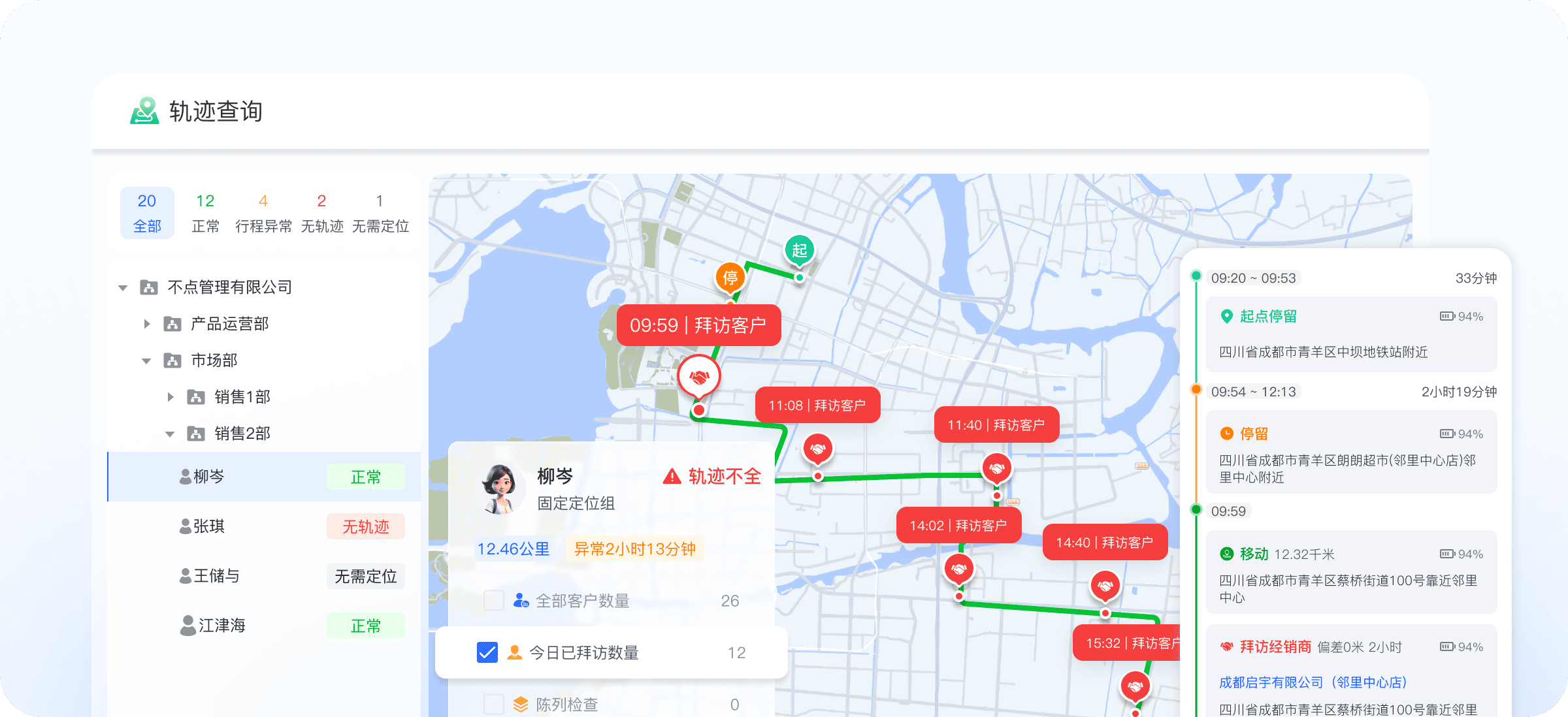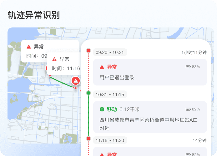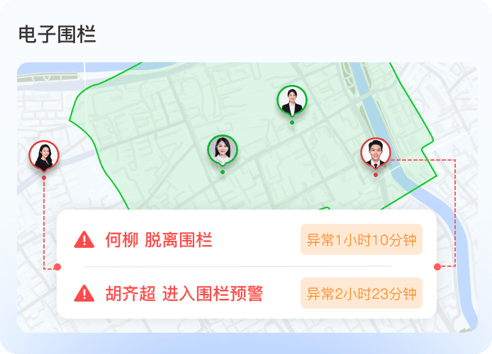 依托工作轨迹实时定位、电子围栏、轨迹异常识别,全程留痕杜绝外勤脱岗、假访漏访、路线偏离