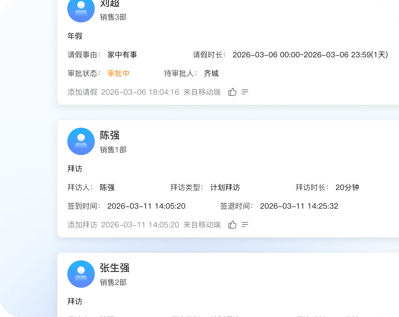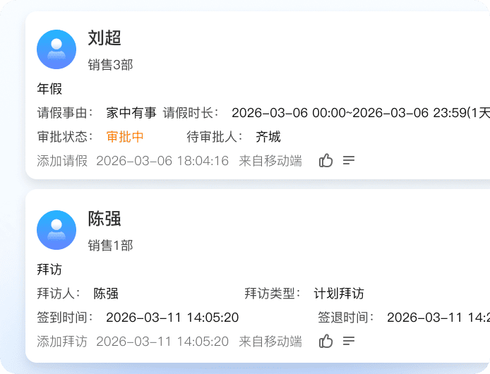 打卡、拜访、巡店、上报等动作实时同步,形成个人工作动态墙;工作动态自动留痕,管理者随时查看,团队协作更透明。