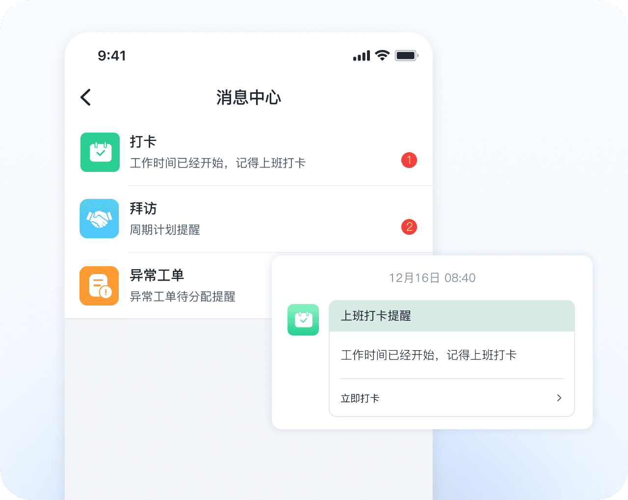 当日拜访计划、打卡、日报填写、出围栏等智能提醒,避免工作遗漏